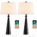 Set of two contemporary modern table lamps from the Ledger collection by 360 Lighting. Each lamp has a built-in 2A type USB port for powering electronic devices.
