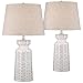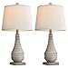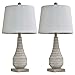 2-Pack Lamp Set: 24.5" high overall, Oval lamp base with White linen drum shade which is 13"Dia X 9.5"H, Rotary on/off switch on socket, 5-foot long cord