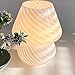 [Design] Vintage style white Striped glass mushroom lamp Full Of Medieval Style, With A Large Mushroom Shape, Wavy Stripes Are Clearly Visible, And The Design Is Exquisite