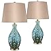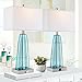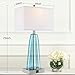 Modern coastal glass table lamp: paired with a rectangular white fabric shade, its' teal-toned glass with draping detail alongside brushed nickel accent combines simplicity and the right touch of color. The ripple design of the glass adds a strong and sophisticated look, adding instant eye-catching appeal to your space. If you're seeking simplicity with a dash of uniqueness, this is the perfect table lamp set for you!