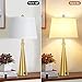 💍【High-Quality Material Made & Eye-protection】High quality metal materials and covered by brass gold electroplate made the lamp body of these USB table lamps are anti-rust and corrosion free. The heavy base and clever cone design of these nightstand lamps no tipping or wobbling and hold the shade steadily, no shaking. Moreover, the white fabric lampshade will soften the luminance, make lights bright enough but not harsh, which can effectively relieve eye fatigue and protect the eyesight.