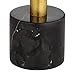 Brass finish over metal construction. Black marble accent on each lamp. Black tapered drum shades. May ship in multiple boxes and arrive at separate times.