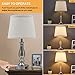 💠【Easy Assemble & High-grade Silver Base】Our set of 2 silver nightstand lamps skip painless installations, it only takes 4 steps to bring you an elegant touch lamp set with clear user manual. Kindly be noted the lamp holder should be put onto the saddle with no inclination to ensure the entire balance. The premium white linen shades paired so well with its brushed nickle finishing, building a sophisticated high-class home addition where they stands.