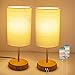 🎀【Compact & Save Space】This nightstand desk lamp set of 2 is compact and portable, The dimension of this small tripod lamp is about 14.6" x 7.9" x 5.1" inches with 67 inches power cord that allows you to place your lamp where you need. There is a convenient on/off switch on the cord, comes with wooden base prevents scratches on your desktop.