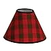 Lamp shade features a pinecone brown and deep red check print and is finished with a brown trim