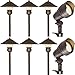 {Long Lasting Quality} Outdoor LED pathway lights made from brass metal that does not rust or corrode and beautifully patinas over time. These durable antique bronze finish landscape path lights come with brass top and ceramic white under coating that directs and intensifies the light source towards your desired location without blinding. The outdoor landscape light wire exit is insulated to prevent moisture from entering to ensure long-term use. IP 65 waterproof outdoor garden lights