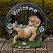 Hand painted garden decor made of weather resistant material that's easy to install and set up. Upgrade your decorations with these garden chillax puppy welcome statues