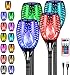 【EASY & CONVENIENT OPERATION】Halloween solar lights outdoor work with 20-key remote allows you to set timer on your tike torch at 3H, or 6H, as well as static flickering light options and brightness levels, Mode-pressing the mode button 13 colors will automatically change, replace a color every six seconds on average. With this super convenient remote you can enjoy the relaxation of your solar flame lights outdoor without worries.