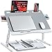 LARGE SIZE & MULTI-USE:The spacious surface(25.6"Lx17.7"W) is perfect for a 18-inch laptop and a few selected extra items; This laptop table also means that there is enough room to put your legs without bumping the tray top.Not only work as a laptop desk, but also as a TV Dinner Tray, Serving desk for patients/kids, Floor coffee desk, Book tray of readers, Study writing desk for kids, laptop Holder.