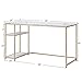 【Marble White Gold Office Desk】: Constructed from sturdy satin gold metal with a marble board, this sleek and elegant desk adds classic beauty to any room and will have you living in the lap of luxury.