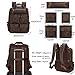 【Upgraded Leather Backpack】Based on customer’s comment, the brown backpack is updated to sturdy YKK zippers, which bear 1000 times pull strength test. The back of the bag adopts breathable ergonomics mesh pad to ensure comfortable load experience and avoid garment dyeing. A luggage belt is added to hold the backpack on suitcase to make you travel easily. The shoulder straps are updated to hold firmly. The leather flap that goes over zippers is removed, and the velcro is upgraded.