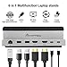 5Gbps Data Transfer and 85W Power Delivery - The laptop holder stand comes with 2 USB 3.0,data transfer speed up to 5Gbps. A PD charging port support max 100W power delivery, max 85W charge your laptop.SD/TF card slots for superior data-storing versatility at a fast transfer speed up to 104MB/s.