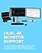 Easily connect to different external monitor setups with output options for HDMI and DisplayPort multi-mode (one 4K monitor at 3840X2160@60Hz or two 4K monitors at 3840x2160@30Hz).