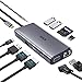 【13 in 1 USB C Docking Station】Plug and play. With this usb c hub multiport adapter, you get 2*4K HDMI, DisplayPort, 2*USB C ports(Both support 100W Power Delivery+10Gbps Data Transfer), USB 3.1(10Gbps), 3*USB 3.0, 2*USB 2.0, 3.5mm Audio, Gigabit Ethernet port.