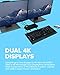 Dual 4K display - connect 2 monitors and a single laptop in ultra HD (4096 x 2160 @ 60Hz): 2x 4K DisplayPort, 2x 4K HDMI, 1x USB-C (Output only), 6x USB-A 3.0 Ports (5 Gbps transfer speed), 1x RJ45 (10/100/1000) Gigabit Ethernet, lock slot, and additional headphone audio line out and microphone in-line jack. Includes: 1 USB-C to C cable and 1 USB-A to C cable