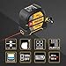 [Designed for Multiple Purposes] Laser measure uses a Class 2 laser and can store up to 30 measurements in its memory. digital tape measure features multiple measurement modes, including distance, area, volume, Pythagorean, and Double-Pythagorean mode. The digital measuring tape can calculate the data measured by the laser and the data measured by the tape measure. Its ergonomic design is comfortable to hold, and the buttons are easy to press.
