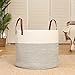 ⭐ Finest Cotton Rope Basket: This woven blanket round storage basket model has been upgraded with beautiful genuine thick real leather handles. While you can use this oversized basket for laundry or storage, it's equally beautiful at home in your living room for all to admire.