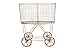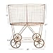 This decorative, vintage-inspired laundry basket features a sleek, small-scale metal frame atop four oversized, antique-style wheels