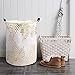 ⭐[Unique Modern Pattern and Premium Fabric]: Perfect suit for your home decor, designed by unique gold stripes pattern form diamond shapes with premium flax linen on the large laundry basket, also linen of white cotton to prevent the twine from sticking to your towels、clothes、blankets or toys in the tall laundry basket, minimalistic combined with rustic style make the cute laundry basket fit perfectly in your living room, bedroom, cloakroom bathroom, laundry room, washing room, baby nursery, etc