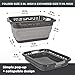 Measuring 22" L x 15" W x 11.25" H when open and collapses to just 1.25 inches; total capacity of each laundry bin is 64 liters (17 gallons) by volume, with a maximum load capacity of 55 pounds