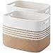 【Portable Collapsible Blanket Baskets】Thanks to the use of high quality materials, our blanket baskets are very sturdy and have excellent shaping ability to stand upright on their own. The shelf baskets can also be folded so that when you don't need it or on long trips, you only need to fold it twice to store it in your closet or suitcase. Portable Collapsible and Durable rope laundry basket dedicated to bringing convenience to your life.