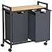 【Multi-use 3-in-1 Design】This laundry cart adds hanging clothes bar and 7 hooks,which allows clothes to be hung to dry,steam,or for additional closet storage.The particalboard shelf offers an extra storage space to keep daily necessities handy. Also,the 2 section laundry hampers provide large storage capacity for clothes collection.This multi-functional laundry hamper meets most of your storage needs.