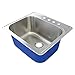 INCLUDES: Stainless steel dual-mount sink with single hole, flex neck faucet, roll mat, flip-top strainer, installation hardware