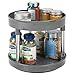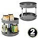EASY REACH: This 2-tiered lazy susan organizer makes kitchen items accessible and easy to reach with a turn, even when stored on upper shelves; The deep outer walls keep items secure and safely in place while tray is spinning; Use to store spices, seasoning jars, baking supplies, oil and vinegar bottles, soda cans, snack pouches, dish soap, scrubbers, sponges, vitamins, supplements, medicine, and first aid supplies; Perfect inside kitchen cabinets, on pantry shelves, or in refrigerator; Set of 2