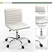 【Perfect Size and Looks Stylish】White leather office chair add to the extra modern style. The armless design allows this chair to slide without difficulty under your vanity table, computer desk, writing desk, easy to push under the office desk for better space-saving. Possesses up to 250 lb weight capacity.