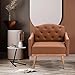 【Modern Retro Design】Mid-Century Retro Modern upholstered accent chair, classical leather and solid wood armrests, combined with button-tufted design, perfect addition to the living room, bedroom, waiting room, guest room.