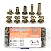 【Size and Colors】 Assorted 110sets 6 sizes Chicago screws (20sets M5*4MM, 25sets M5*5mm, 20sets M5*6mm, 15sets M5*8mm, 15sets M5*10mm, 15sets M5*12mm), Diameter of round flat head:9.5mm, Color: Gold.