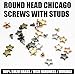 【Size and Colors】 Assorted 110sets 6 sizes Chicago screws (20sets M5*4MM, 25sets M5*5mm, 20sets M5*6mm, 15sets M5*8mm, 15sets M5*10mm, 15sets M5*12mm), Diameter of round flat head:9.5mm, Color: Gold.