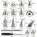 ➤ Sizes and Colors ---- Assorted 5 Different Sizes Tree Spikes ❤ Color: Silver. ❤ 70 Sets Different Designs and Sizes Screwback Studs Along with 2pcs Tools to Meet Your Needs for Different Leathercraft DIY Project.Easy Installation Even You're a New Hand.