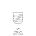 Dimmable, E26 bulb, medium base, half chrome finish, damp rated for use in outdoor rated fixtures, and totally enclosed fixtures
