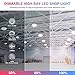 【Useful Two Lighting Modes】: Unlike fixed lighting, the led shop lights can be adjusted to different angles to obtain your needed lighting direction. When you lower all 4 panels, you will get a 180-degree floodlight, and when you raise all panels, you will get a 360-degree omnidirectional light that illuminates the entire space without any darkness. Just choose the right lighting mode that you need.