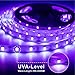 【LED UV Blacklight Strip】Create a stunning fluorescent dance party or body paint show with this 30W UV LED strip lights kit. It comes with 32.8FT of premium SMD2835 600 LEDs that emit UVA light at 395-400nm, which is harmless to the human body. The strip lights have a long lifespan of 50,000 hours and are energy-saving and eco-friendly.