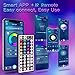 【APP and IR remote control】 There are 2 ways to control LED strip lights: IR remote and smart app. The 24-key IR remote comes with 12 preset colors and 4 dynamic function keys, SIMPLE to use The APP has rich functions in 5 modes: Color Wheel/Music/Mic/Style/Timing