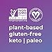 Vegan, gluten free, caffeine free, soy/dairy free, keto friendly, paleo-friendly, Non-GMO