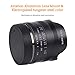 【PROFESSIONAL DESIGN】Constructed of 10 glass elements in 8 groups. The closest focusing distance is 0.085m/3.34 inches. The camera lens is made of metal and has smooth and good touch feeling.