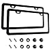 ✅【No-Cover State Name】 Upgraded 2-hole matte black license plate frames size 12.25IN X 6.25IN fits all standard size U.S. license plates, can protects the front and rear plates of the car. The narrow border of the license plate frame does not block the status label or override the state name of your plate.