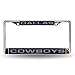 Versatile This frame can be used on the front or back or your car or truck. It can also be used on your trailer. Easy installation.; When you're cruising around town, everyone should know who you root for. Show off your fandom with this black chrome license plate frame from RICO. It boasts a durable metal construction and is decorated with a black laser cut insert. Measures 12"x6"
