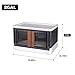 【Top & Front Double Opening】There is a visual design for the clear storage bins with lids, you can easily find the items you want, and then you can open the lid on the top or open it from the front door to take them. The front door has built-in lock buckles to ensure the doors don't just come open on their own, and you need to rotate the brown handles in and out to control the door lock and unlock. Perfectly insulates from dust.