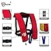 ☛【Compact】: Small footprint. After deflated, the folding size is about 28*18*2 cm, Weight is 0.64 lbs. Just a book size, this inflatable life Jacket is perfect to bring for traveling.