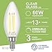 DECORATIVE FILAMENT - combine classic style with reliability and energy savings with 60W Equivalent E12 Chandelier LED light bulbs; The dimmable filament Candelabra LED light bulbs are wrapped in a clear glass housing for elegant classic look and feel