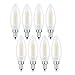 Led frosted glass bulbs - E12 Candelabra LED bulbs, are perfectly suitable for home lighting, like kicthen, bedroom, bathroom, living room, dinning room, house depot, etc; Light weight; Elegant B10 candle shape; Easy to install with E12 base; frosted glass is easy to cast a wonderful warm glow in all directions.