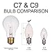 {Energy Efficient & Dimmable} Clear C9 LED bulb for Christmas Outdoor Lights consume 90% less electricity and provide more capacity per line to avoid tripped GFCIs and breakers compared to traditional incandescent bulbs. These Dimmable large bulb Christmas lights are perfect for creating spectacular light shows and old fashioned Christmas lights displays for your home or business. C9 lights for outdoor string lights are easy to install with Christmas light clips and bigger than C7 led bulb