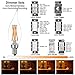 【LED Flame Tip Style】Flame tip shape, classic amber glass design with exposed filament offers a warmly retro appearance, with E12 base. This candelabra LED lights are suitable for chandeliers, pendant lighting, wall sconces, bathroom vanity light, ceiling fan, lamp post in room, hallway, entryway, porch, etc.application with a E12 screw canelabra base socket.