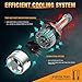 EFFICIENT COOLING SYSTEM: H11 light bulbs adopts full aviation aluminum body, unique hollow-carved heat sink and built-in 12,000RPM high-speed powerful non-resistant silent cooling fan, effectively improve heat dissipation efficiency to extend service life up to 50,000 hours.