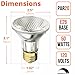 Contains: 1 x PAR20 Dimmable Halogen Reflector Flood Bulb / 39 Watts / 2850 K / 120 Volts / E 26 medium-base / 550 Lumens – Halogen Bulb warm-white