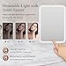 [3 Color & Stepless Dimmable] - To provide suitable lighting under different occasions, this compact make up mirror provides 3 colors LED lights. Gently tap the switch to turn on and off. Hold the switch to steplessly adjust the brightness for perfect lighting. This LED mirror is suitable for makeup wearing under all lighting condition, no matter indoor or outdoor, at day or night.
